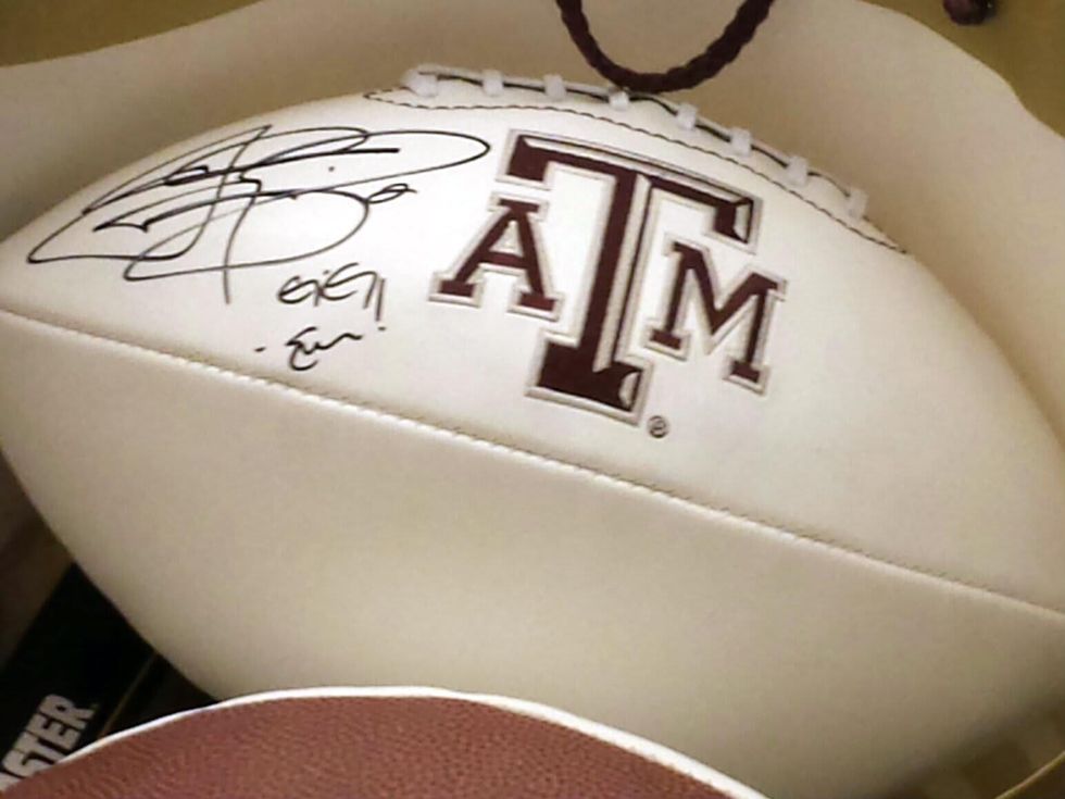 Backstage after the fashion show, Manziel was friendly and gracious, posing for numerous photographs, signing autographs and even signing a few footballs. The guys in dark suits and gray Stetsons were members of the Texas Rangers, a security detail for Johnny Football. It was a surreal evening with the A&M quarterback and a posse of rangers milling around a high-end women's department store.