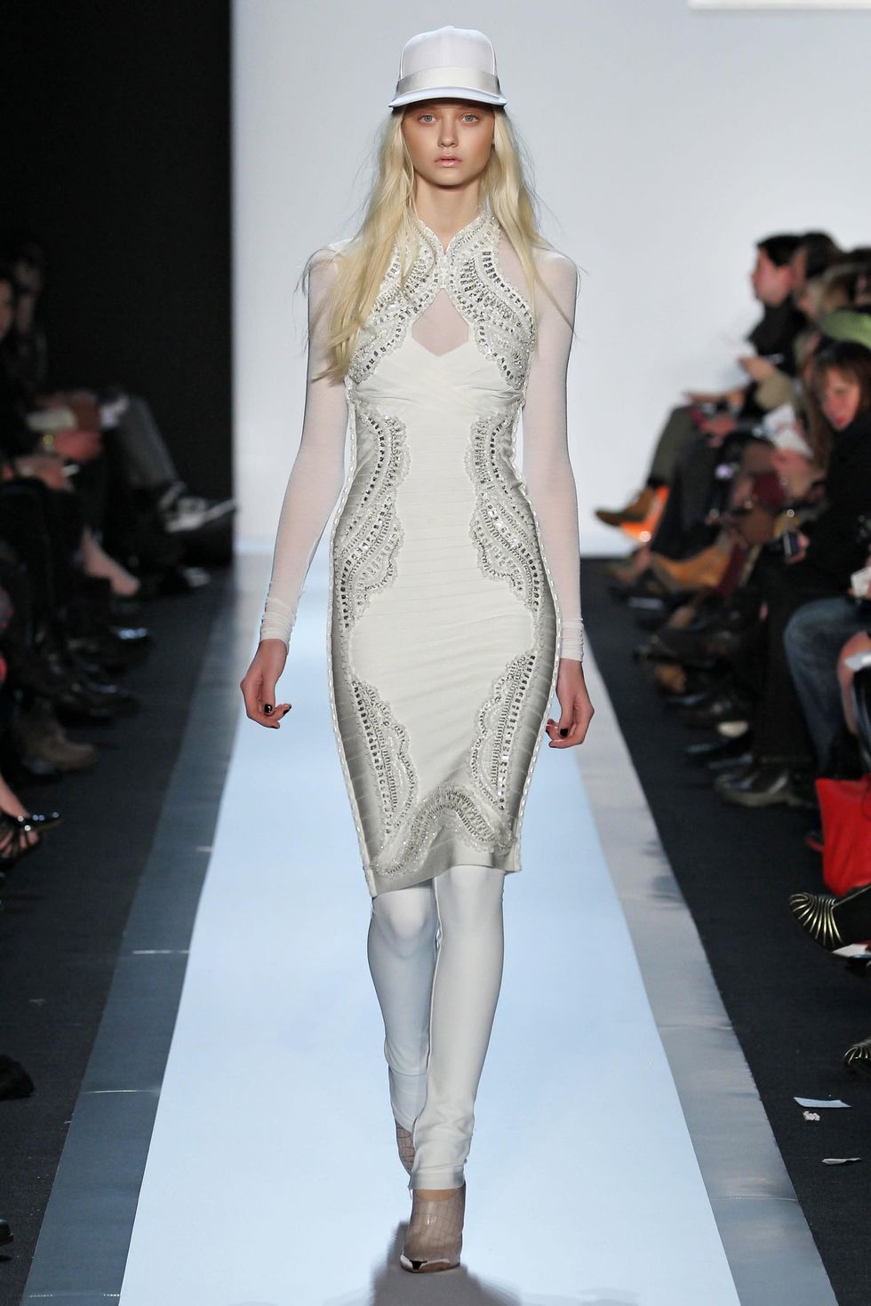 Even covered up, the Hervé Léger client looks fierce.