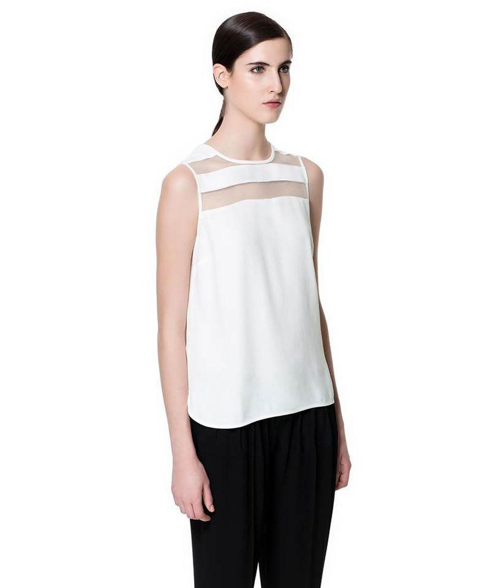 Sheer garments work well for warmer months, and moms love them for their versatility, breathability and — dare we say it — sex appeal. Try a tank under a sheer blouse for the office; switch to a lacy camisole for a night out. However, there are two rules for wearing anything sheer: Cut out all tags (including the laundry tag), and wear the right bra. Strapless is a must when just the shoulders are sheer; a regular bra — worn under a tank, of course — works with a fully sheer top. --- Pair this gorgeous beaded top with a solid black tank and black pants. ($89.90 Zara [https://www.zara.com/webapp/wcs/stores/servlet/product/us/en/zara-nam-S2013/358004/1049991/HAND%20EMBROIDERED%20ASYMMETRIC%20TOP%20WITH%20BEADING])