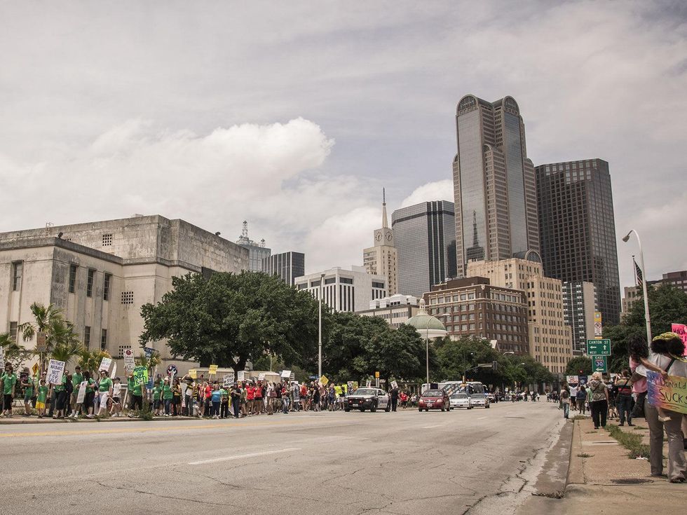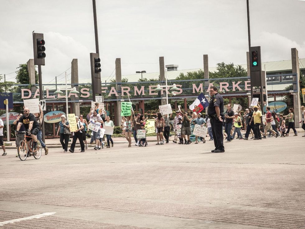 On May 25, Dallas joined 435 cities around the world in a March Against Monsanto, to protest the agribusiness giant's genetic and financial manipulation of food crops. Nearly 1,000 people showed up to stage a rally and round-trip march from City Hall to the Dallas Farmers Market.