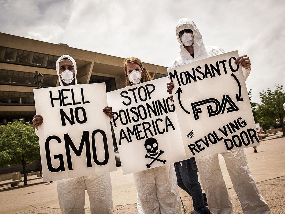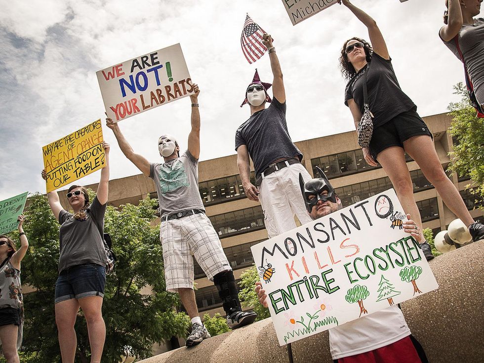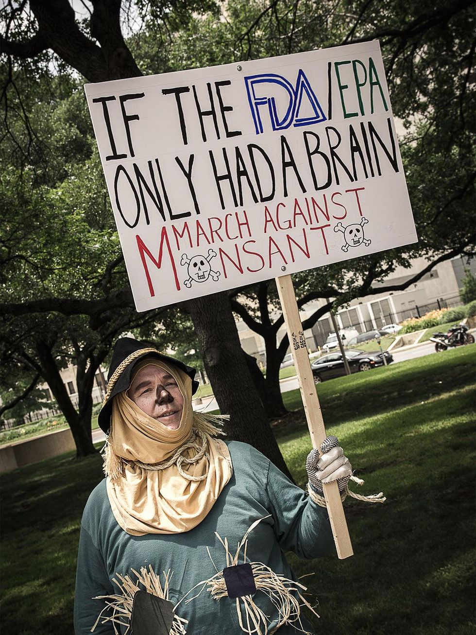 Some participants got creative with costumes and signage, such as this scarecrow from Wizard of Oz. In March, the U.S. Congress and president passed a bill [https: /www.prisonplanet.com/top-10-excuses-for-obama-signing-the-monsanto-protection-act.html] with a controversial provision that bans courts from halting the sale of Monsanto's genetically modified seeds and protects Monsanto from lawsuits. The Monsanto Protection Act is what spurred many people to protest.