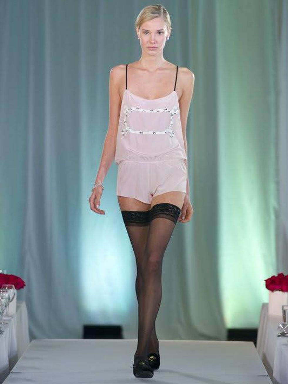 Ari Dein, from lingerie designer Arielle Shapiro, caught our eye immediately. Shapiro's luxurious handmade silk sleepwear can be worn outside of the bedroom — if you dare. The designer's attention to detail (i.e., hand-pressed gold leaf and handmade ribbon) had us coveting a new trousseau.