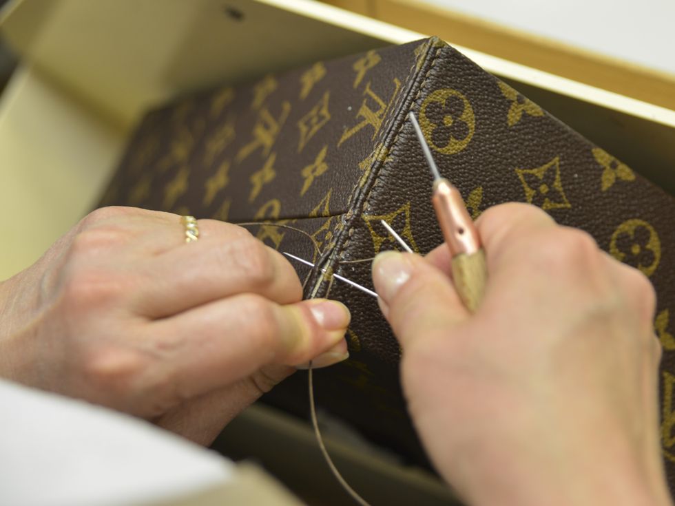Even though Louis Vuitton is owned by the French conglomerate LVMH, there's still a family feeling at the ancestral home and workshops, where trunks and handbags are made in a village outside of Paris. Come along for a special tour.