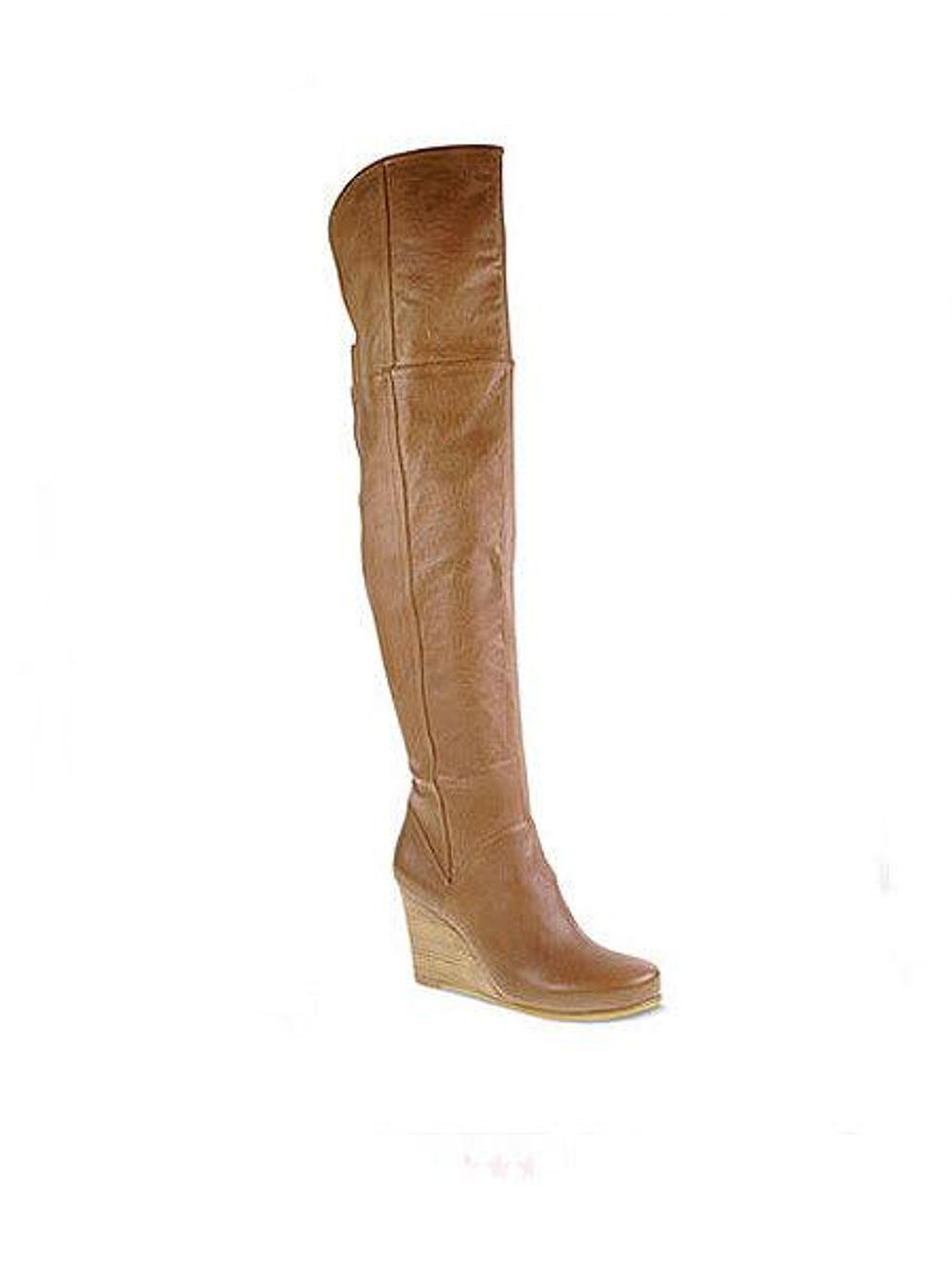 At the office, try a wedge style; it's dressier than a flat but more casual than a heel. Keep your outfit professional by wearing your boots with skinny pants, a button-down and a blazer. A skirt with very tall boots may come off as a bit too risqué for work.