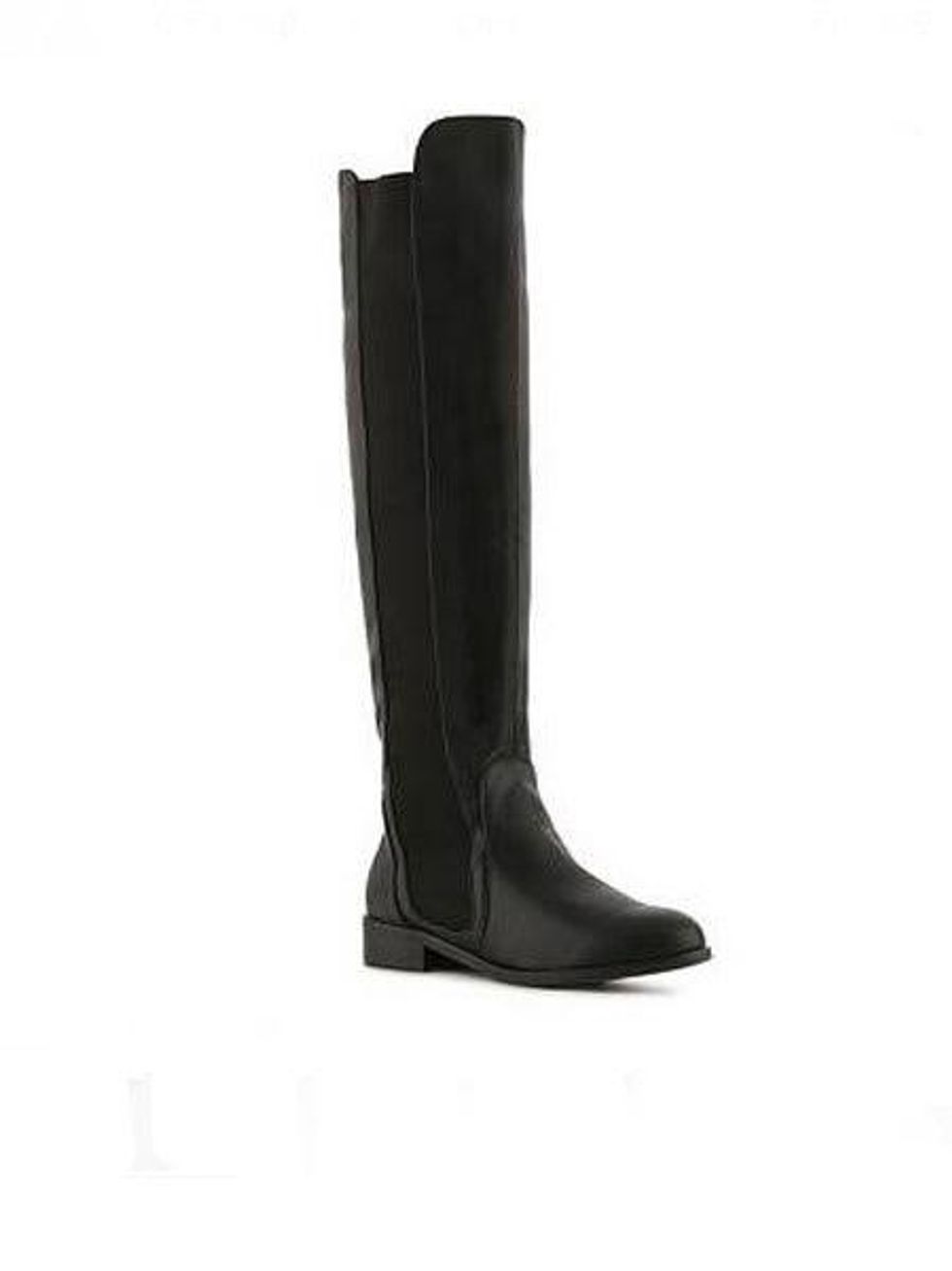 This two-tone boot is sleek and distinctive. ($168.76 Asos [https://www.asos.com/River-Island/River-Island-Leather-Contrast-Knee-High-Boots/Prod/pgeproduct.aspx?iid=3172580&cid=4172&Rf947=2581&Rf-800=-1,120&sh=0&pge=0&pgesize=204&sort=-1&clr=Blackbrown])