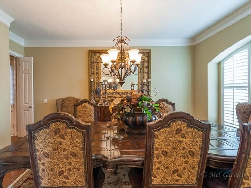 Professional landscaping surrounds the custom swimming pool and spa in the back, which also boasts a gazebo. The garage extends to a two-car porte-cochère, providing room for extra cars. The home is listed with Vintrisa Fontenot of Carrington Real Estate.