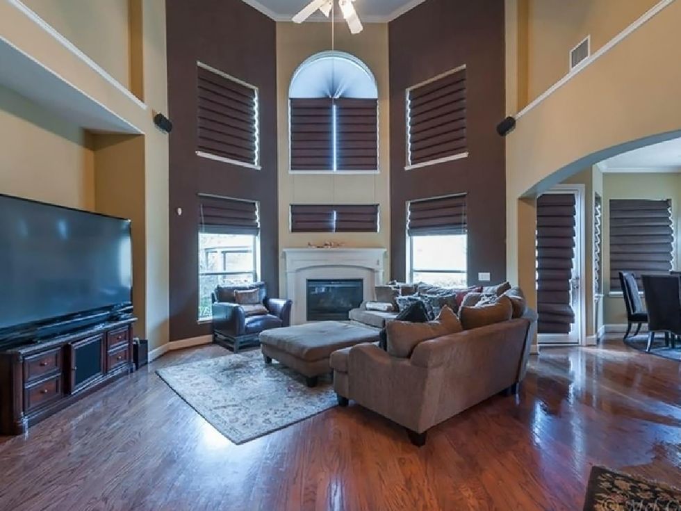 Located in the west Houston subdivision built around the Royal Oaks Country Club, Young's former home at 12006 Legend Manor Dr. is a traditional-style, two-story stone and brick structure within a gated community. Owners enter to find formal dining and living rooms, as well as a large family room with two-story ceilings.