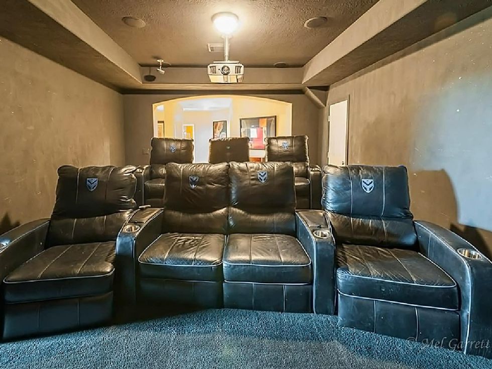 Upstairs, owners enjoy the media room for screening the latest films. The remaining three bedrooms are also on the second floor. In total, the home offers three full and one half-baths.