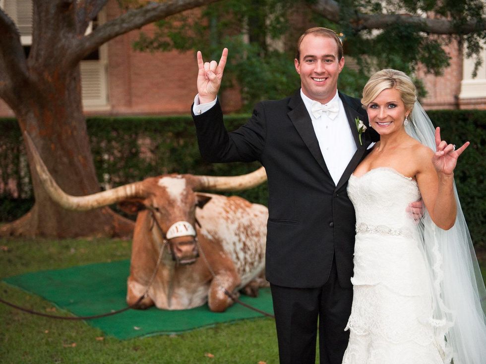 When a University of Texas Silver Spur and a University of Texas cheerleader plan to exchange vows, the celebratory theme was bound to include some Longhorn pride.
