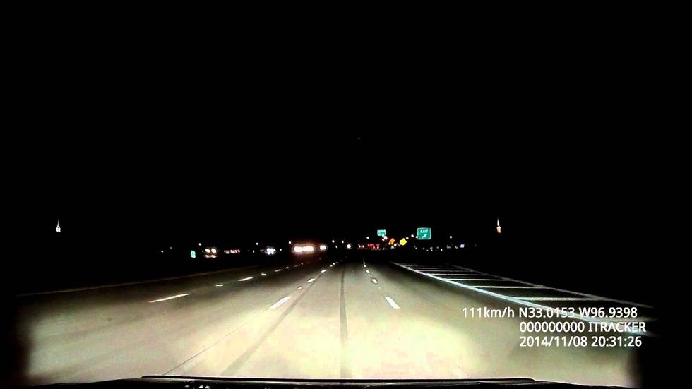 Grapevine resident Stephen Denney also caught it on his dash-cam (posted above) while driving on the Sam Rayburn Tollway (121) in Carrollton.