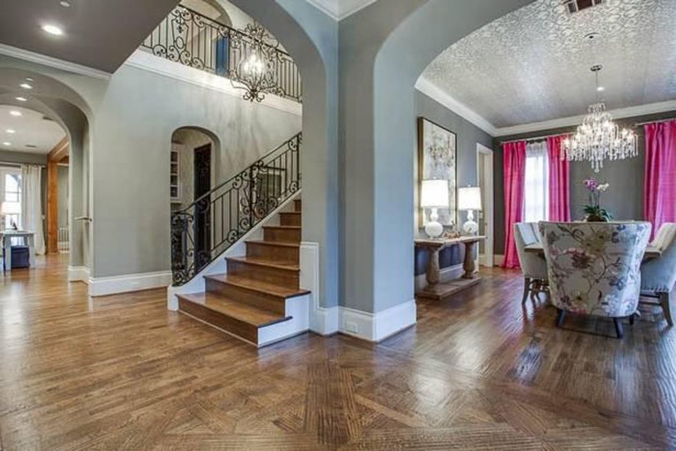 Built by Gage Homes in late 2009, the home is 6,400 square feet of pure, clean lines and that classic Park Cities floor plan: foyer, sweeping staircase, living on the left, dining on the right, and kitchen and den straight ahead. A well-done layout sure lets in the light, and the lot is pretty hefty for University Park: 70-by-106.