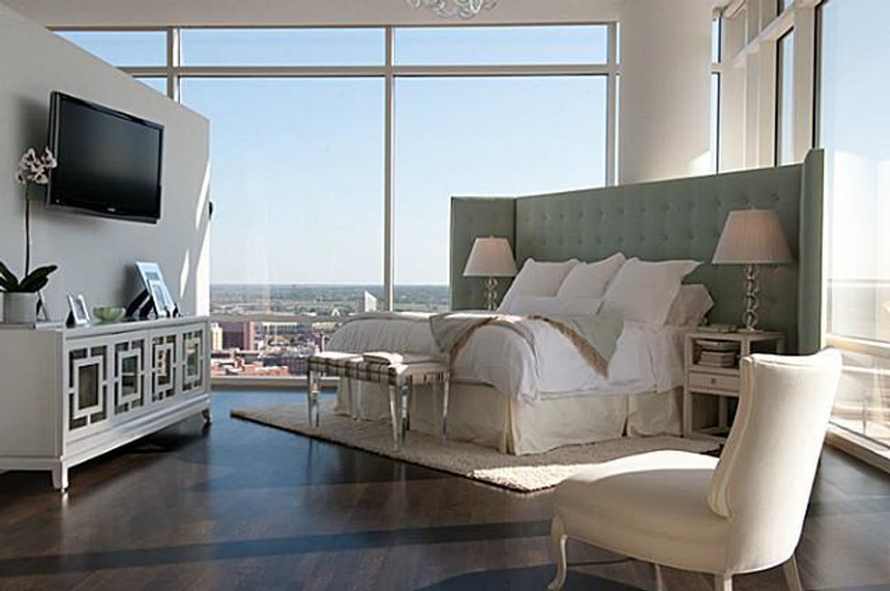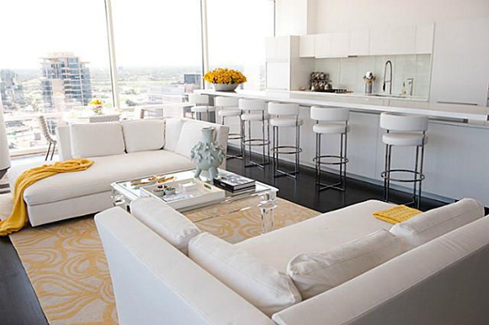 The 29th floor condo has 365-degree views of downtown Dallas, Margaret Hunt Hill bridge and cocktail-worthy sunsets. The professionally decorated space includes two of each: masters, guest rooms, living areas, libraries and kitchens. There are also shared spaces, like the party room, movie theater and exercise room. Open up the glass doors, and you have one big party pad.
