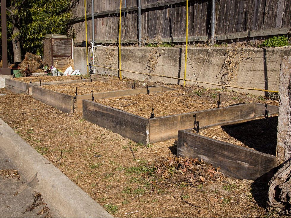 Schoder was unfazed. To level out the incline, he built a long, two-tiered raised bed frame, each row about a foot or two tall. For the frames, he used a pile of reclaimed wood he'd gathered and stored in his garage over the years, minimizing his cost. At the north end of the space where the ground was flatter, Schoder built three 4-by-4-foot raised beds.