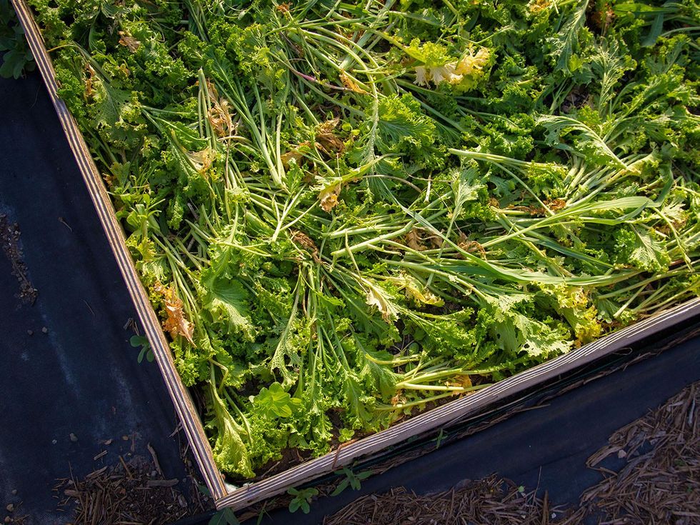 I began experimenting with the technique this year in my raised bed garden. A mustard green bed that I harvested from throughout last winter just this week started to bolt. So I cut down the dense growth of greens and scattered them out in the 4-by 8-foot frame. This bed was almost entirely weed-free, as the greens crowded out the grasses that normally take over in the winter.