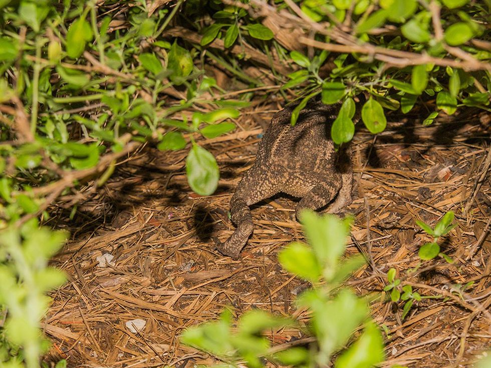 During the day, I'd bump into them, sitting in the shade of the landscaping and waiting out the heat. At dusk, while completing my watering chores, I'd spot them ready to spend the night gorging on whatever was too slow to crawl away from their rapid-fire tongues.