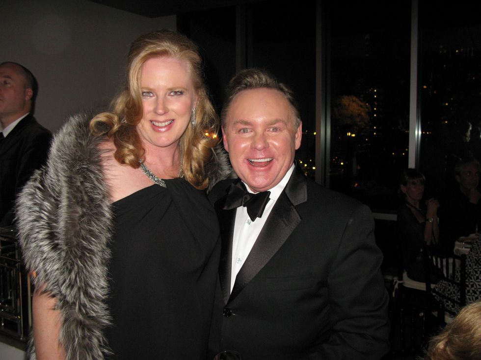 After much socializing, the dinner bell rang, and guests moved down several floors to the beautifully decorated dining room. White tablecloths gilded in silver and napkins monogrammed with the couple's TC enhanced tabletop decor, which was accented with billowing centerpieces of white flowers and soaring black tapers. Finding their tables were guests including Forty Five Ten owner Brian Bolke and Faisal Halum, Suzanne and Dave Droese, LB Rosser, Lucy Wrubel, and Tracy and Josh Madans.