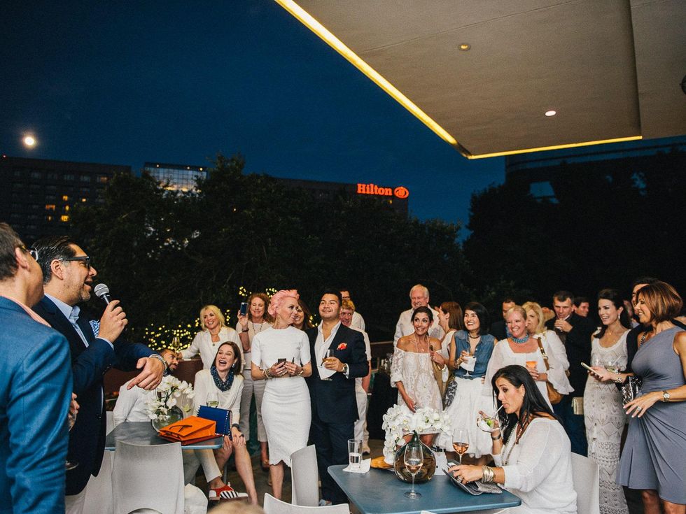 The RDG fest included buffet tables with Robert Del Grande's sophisticated Tex-Mex offerings and passed hors d'oeuvre, presentation of a birthday cake bearing the image of the newlyweds and presentation of a gray Hermes Birkin bag — a group gift to which Fiscus contributed mightily.