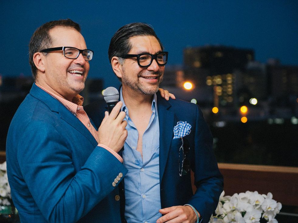 This fete was part two of the celebration; part one took place at the birthday boy's namesake hair studio the day before. Fiscus snuck into the salon in the wee morning hours with loads of flowers and balloons, surprising Ceron when he arrived for work.