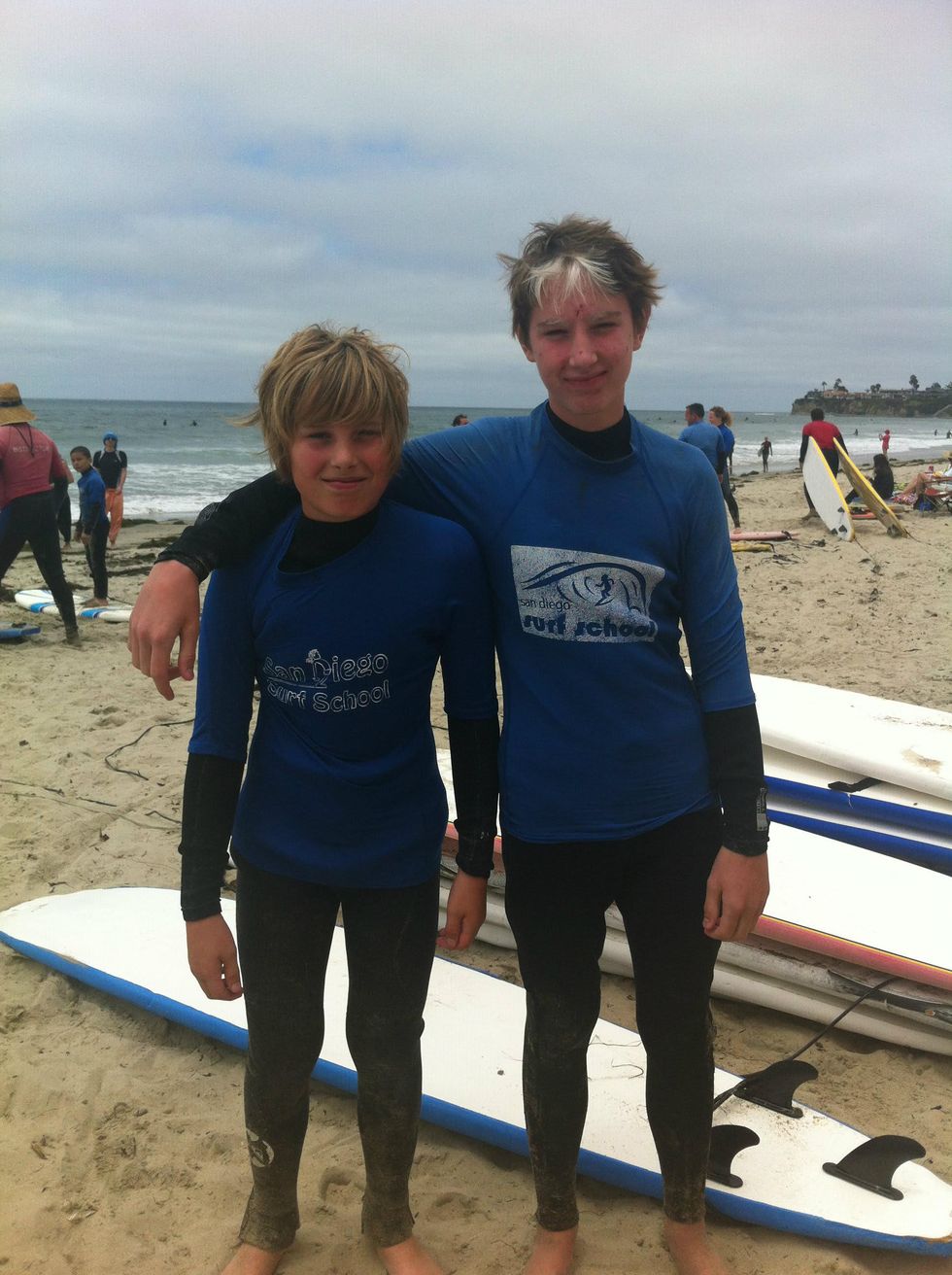 Good times have included 70-degree temps in Southern California, surfing lessons, sushi (twice), the polar bears at the San Diego Zoo, leaving the back of my Mazda 5 open and discovering it several miles down the highway (all was recovered and intact back in the Yucca Motel parking lot), singing together, inside jokes, and in-room wrestling matches. (I sit those out.)