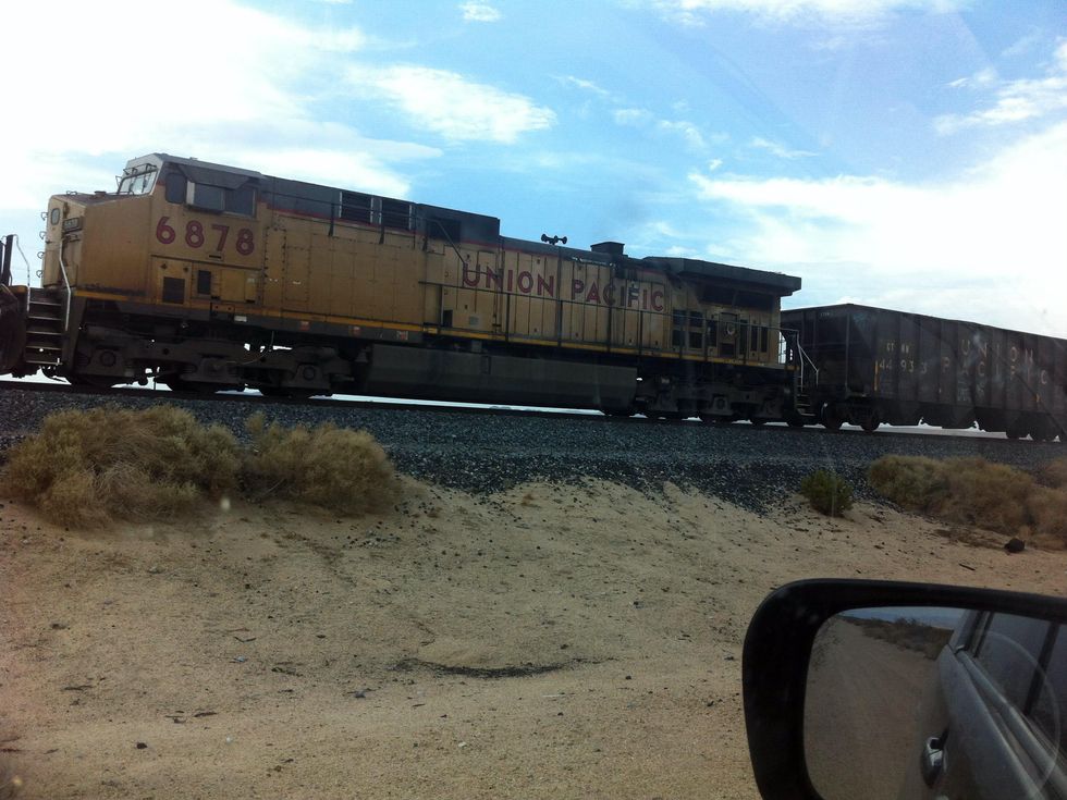 Ten minutes of abandoned desert road later, we came to a dead end at the train tracks. No worries. Another detour. Hubby is in quiet panic mode. But hey, at least he’s quiet, I figure. The sandy tire tracks lead us to a paved road. And then another “road closed” sign.