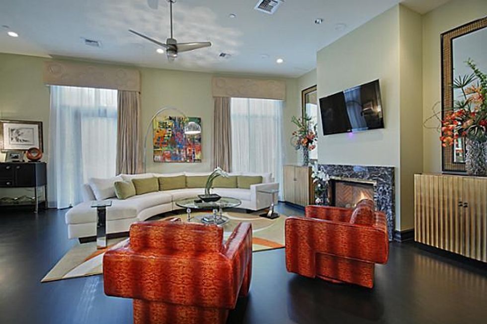 The kitchen has top-of-the-line gourmet appliances; wine storage; granite counters; and rich, custom-finished cabinets. The master is huge, with a sexy, sophisticated spa bath decked out with double stainless steel vessel sinks.