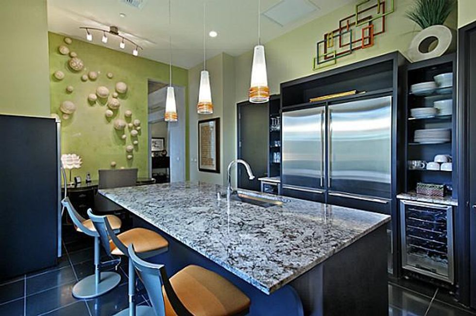 If Austin Powers is your hero, baby, well shagadelic. Unit #100 is a totally mod first-floor pad stuffed with spectacular contemporary furnishings, and they are included in the purchase price. There is even wallpaper on the ceiling.